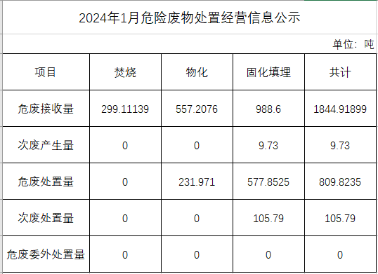 1月危險廢物處置經(jīng)營信息公示