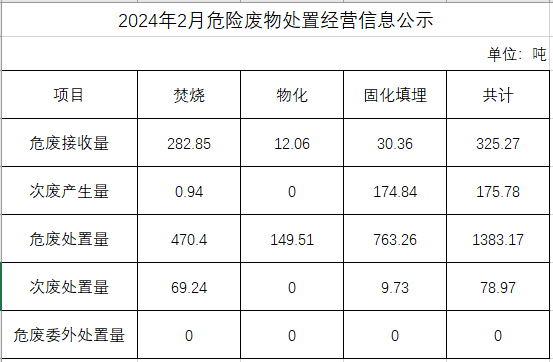2月危險廢物處置經(jīng)營信息公示