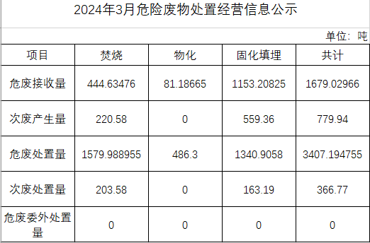 3月危險廢物處置經(jīng)營信息公示