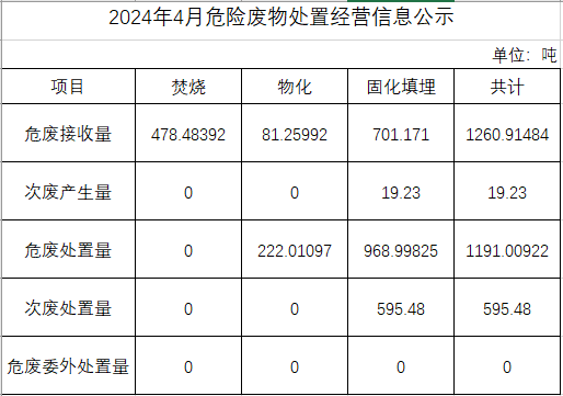 4月危險廢物處置經(jīng)營信息公示